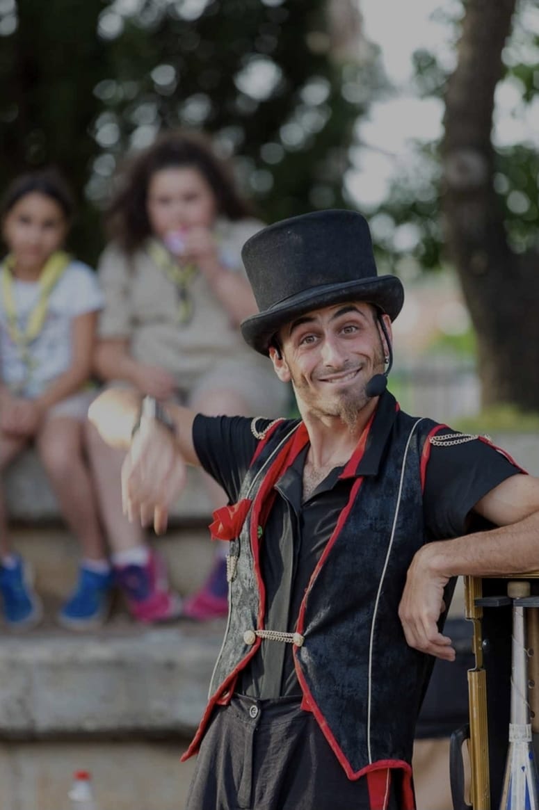אמן הקרקס במופע שעובר את גבול היכולת באמצעות חשיבה יצירתית.